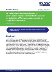APTIMA® Trichomonas vaginalis, a transcription-mediated amplification assay for detection of Trichomonas vaginalis in urogenital specimens.